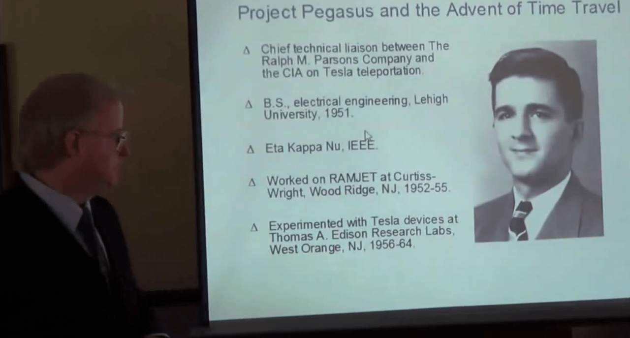 Basiago claimed that the Ralph M. Parsons company, was directly involved in developing some of these time travel technologies of interest to the CIA and DARPA. Basiago’s father, Raymond, was a “special projects engineer” for the company and its liaison with the CIA.