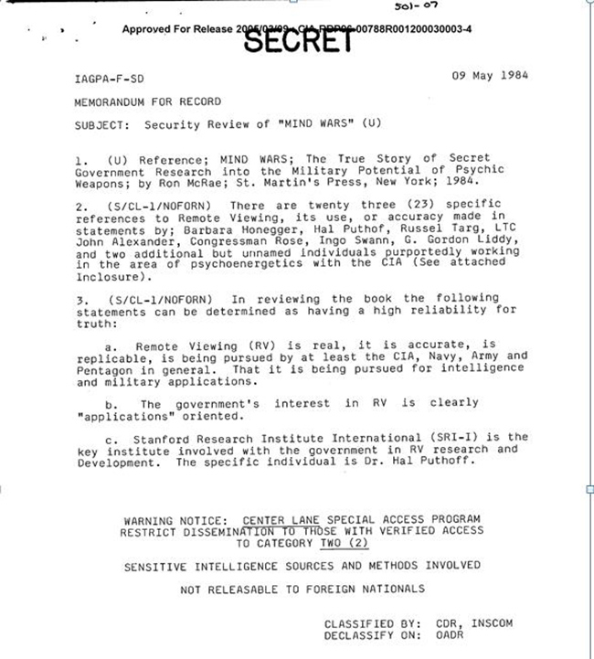 The conclusion was that remote viewing had sufficient accuracy to be utilized for field work as the following declassified CIA document dated May 9, 1984 clearly states.